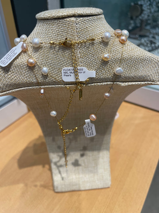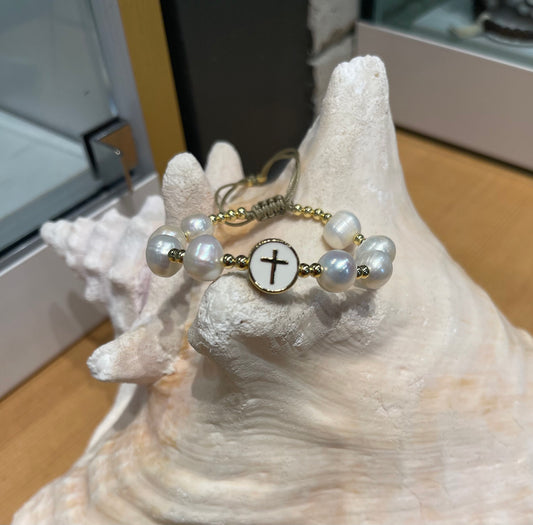 Cross Choker, Freshwater Pearl and Hammered Metal Cross Necklace