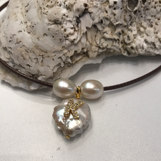 “Klara’s Keychain” Freshwater Pearl & Leather Keychain